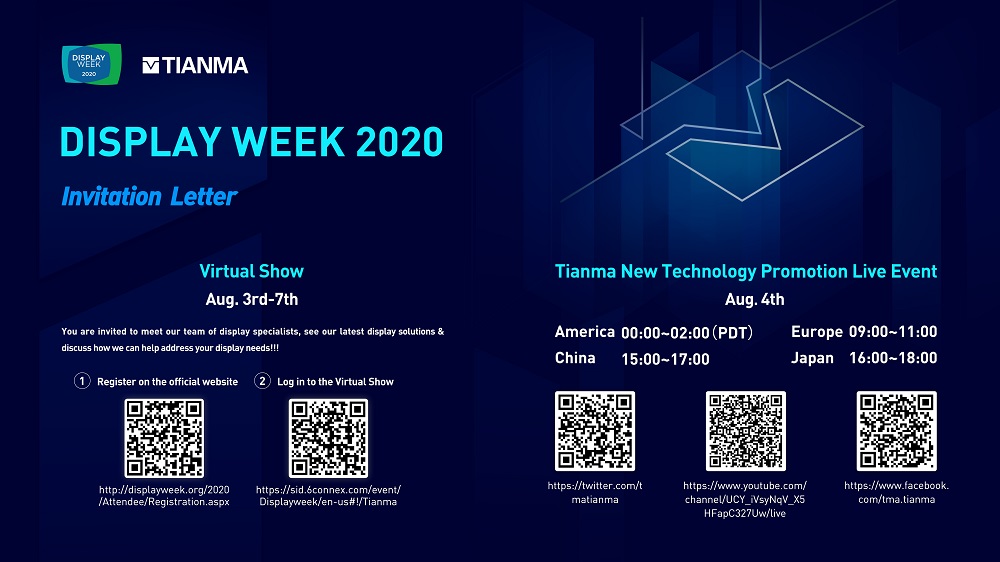 Tianma Group will showcase the latest display technologies at Society for Information Display’s (SID) Display Week 2020, Aug 3-7, in San Nose, California.